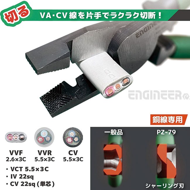 日本工程師ENGINEER 電纜電工螺絲鉗 PZ-79 PZ-79
