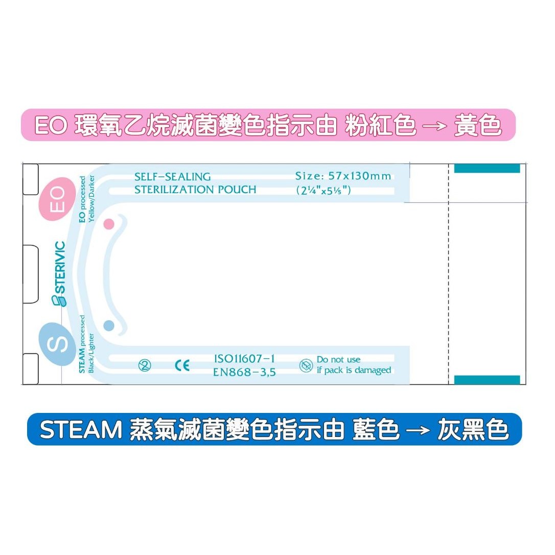 Sterivic 斯德瑞滅菌自黏袋 STEAM/EO 雙變色指示 SVSP-070260 和更多型號