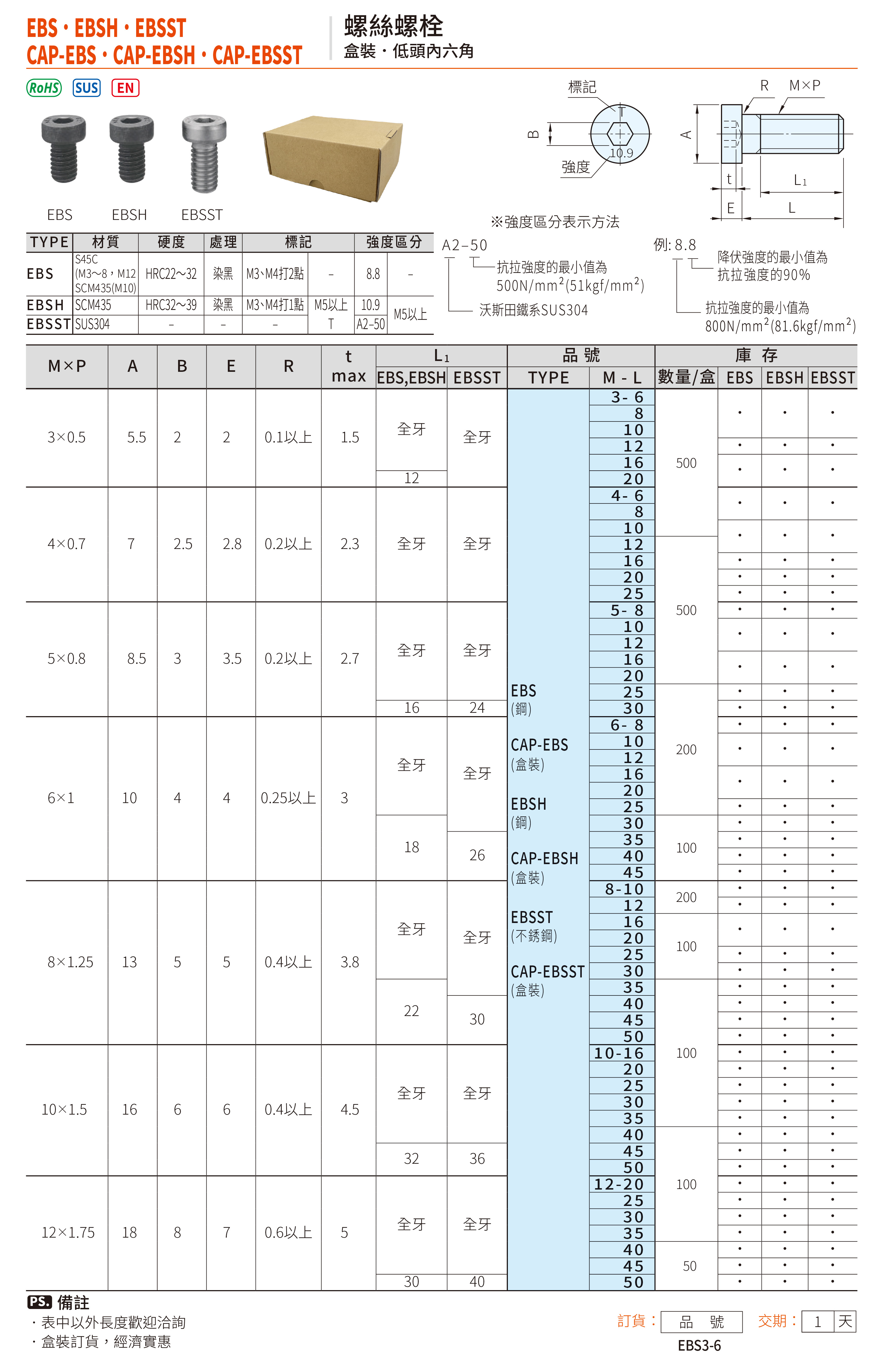 低頭內六角螺栓(SUS304)(螺紋M8x1.25) EBSST8-16 和更多型號