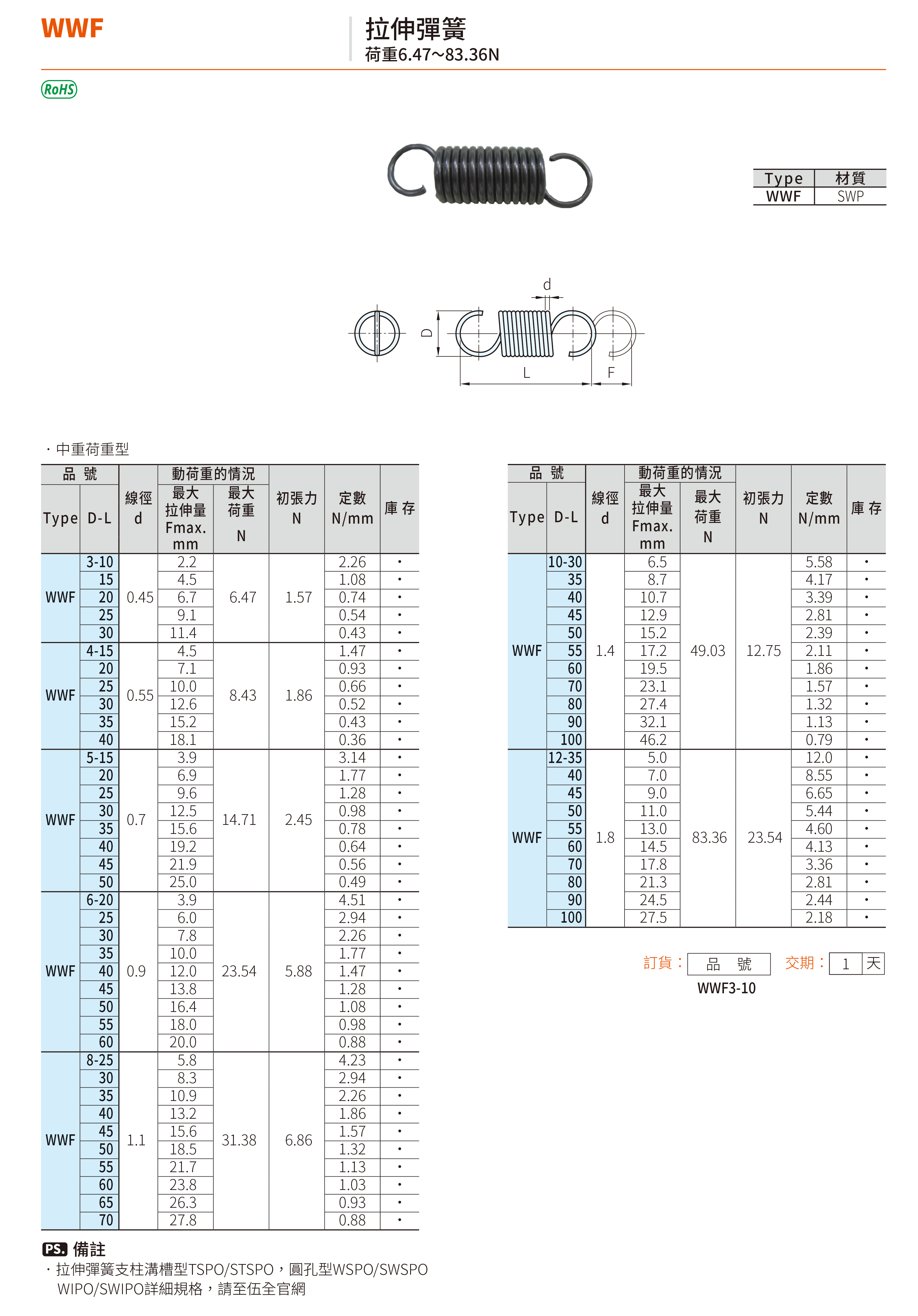 TOHATSU 拉伸彈簧(SWP)荷重6.47~83.36N(外徑12) WWF12-40 和更多型號