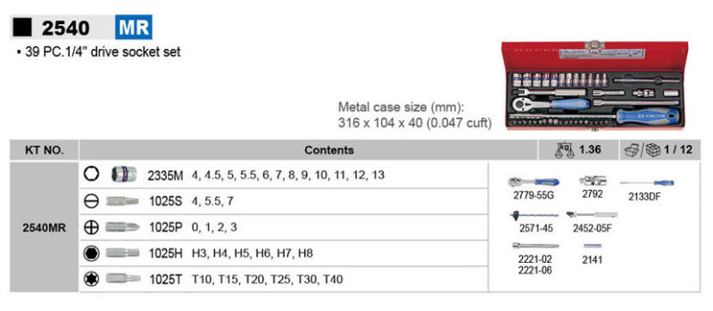 KING TONY金統立 39件式 1/4"二分DR. 套筒扳手組 KT2540MR KT2540MR