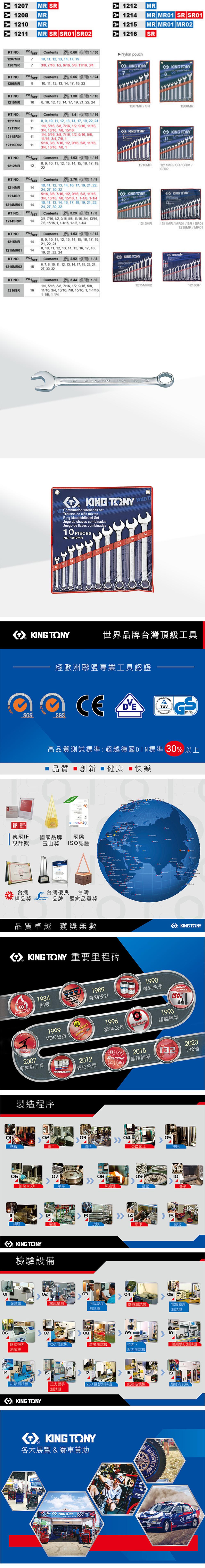 KING TONY金統立 10件式 複合扳手組梅開扳手 8~24 mm KT1210MR KT1210MR
