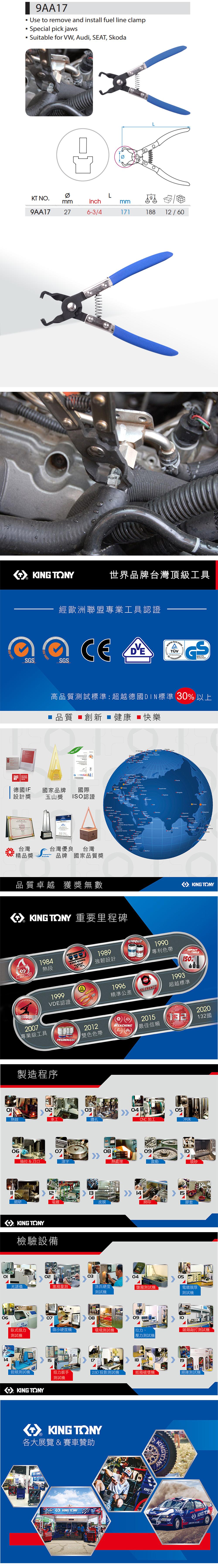 KING TONY金統立 直型特殊式管束鉗 KT9AA17 KT9AA17