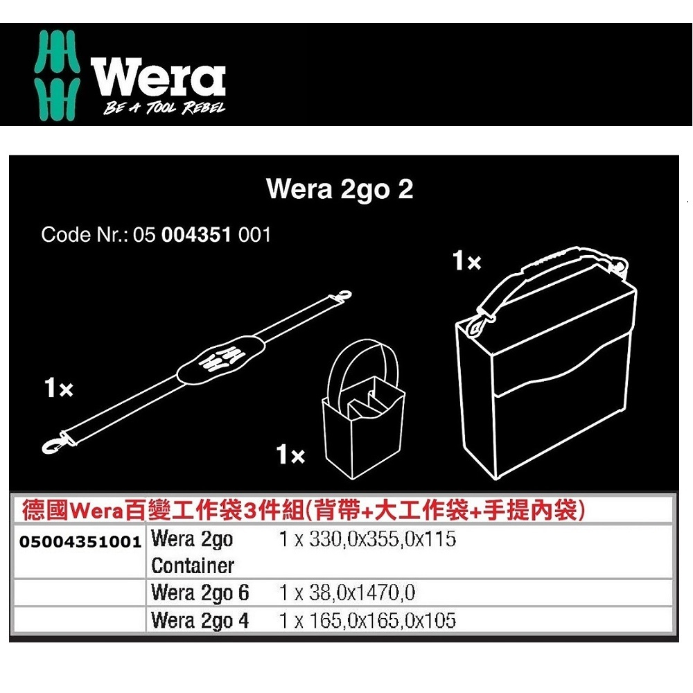 Wera Tools 百變工作袋3件組(背帶+大工作袋+手提內袋) 2GO-2 2GO-2