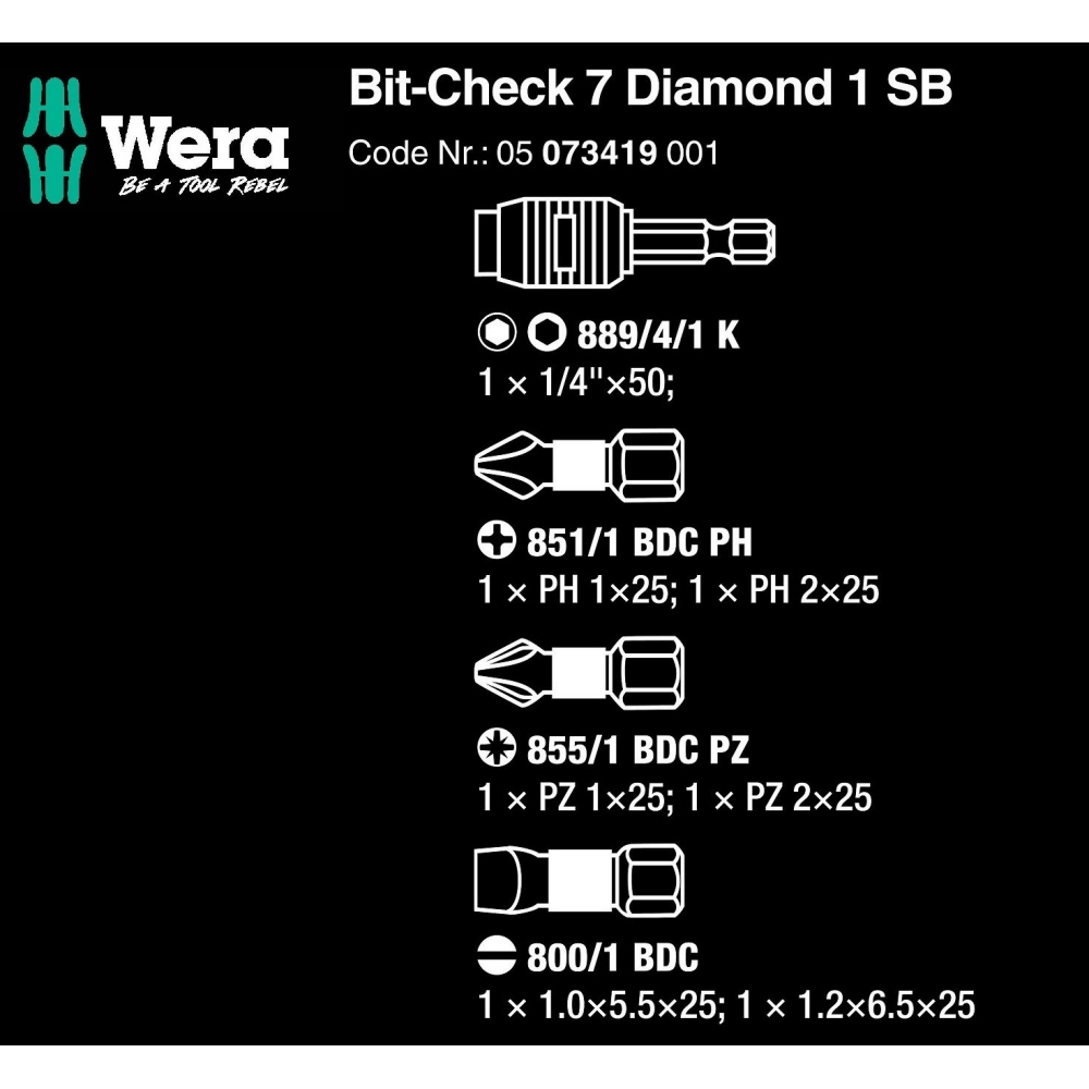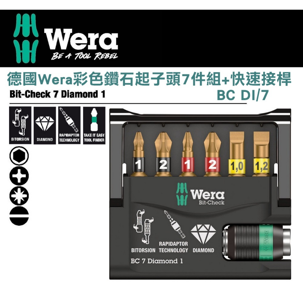 Wera Tools 彩色鑽石起子頭7件組+快速接桿 BC DI/7 BC DI/7