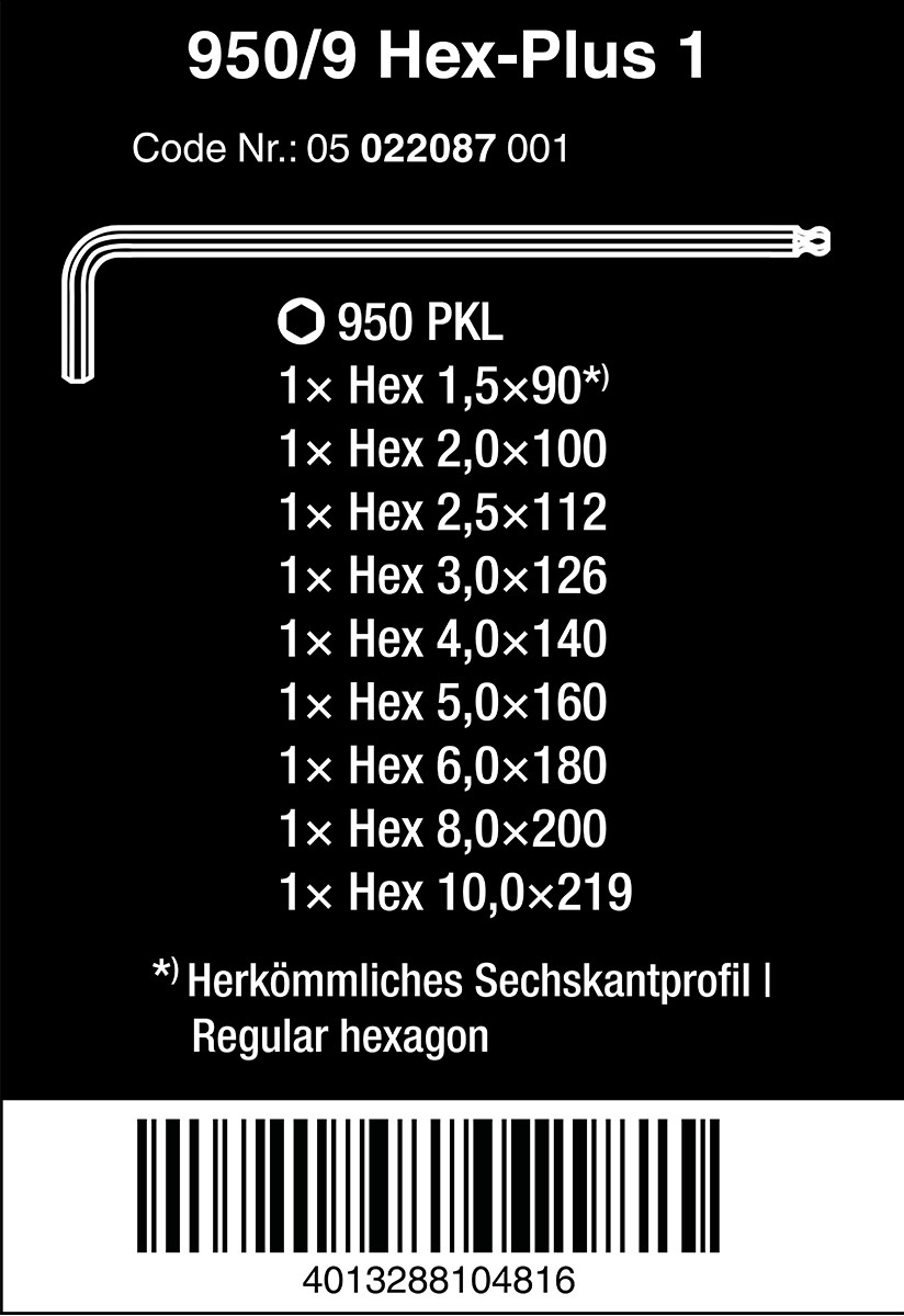 Wera Tools 超強型(長)六角球頭扳手(9支組)公制 950PKL/9 SM N 950PKL/9 SM N