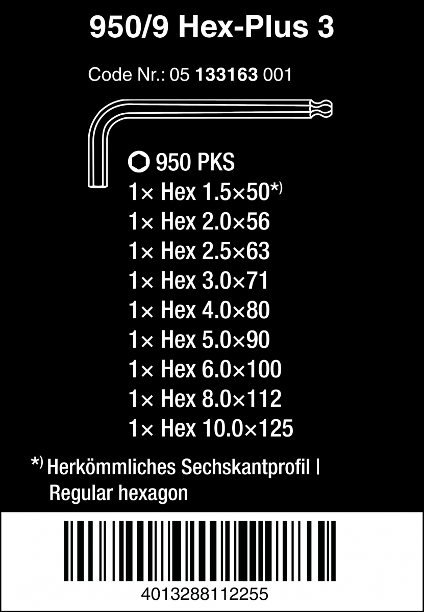 Wera Tools 超強型(短)六角球頭扳手(9支組)公制 950PKS/9 SM N 950PKS/9 SM N