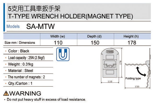 日本 DEEN 日本 5支用工具車扳手架 SA-MTW SA-MTW 系列