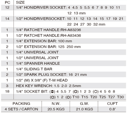 台灣 HONITON 59件兩分、四分多功能套筒組 402059MH