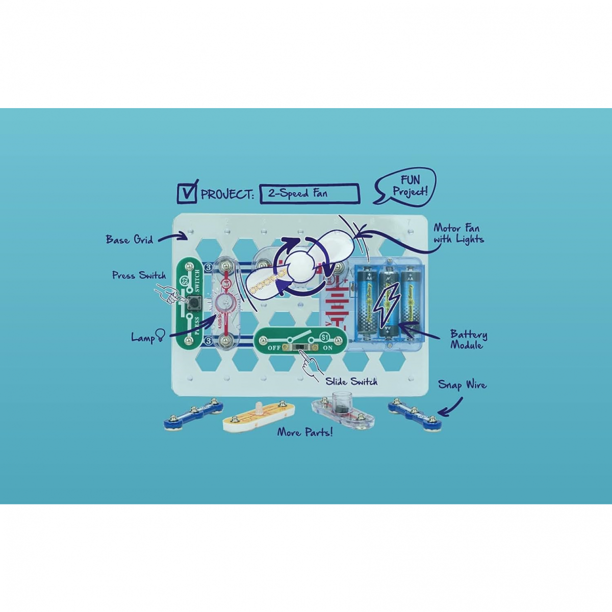 屢獲殊榮的套件!我們很自豪能夠生產出深受孩子、父母和教育工作者喜愛的高質量產品。Snap Circuits 套件贏得了許多獎項 - 包括年度專業玩具獎,「Serious STEM! 」獎項、 「 Good Housekeeping’s Best Toys」(好家政的最佳玩具)、 「 Purdue University’s Engineering Gift Guide」(普渡大學工程禮物指導)、 「 National Parenting Center’s Seals of Approval」(國家育兒中心官方認證)、 「 Toy Insider‘s Top Holiday Toys」(Toy Insider 的頂級假日玩具)、入選 「 Dr. Toy 100 種最佳兒童產品名單」和 「 Dr. Toy 最佳教育產品名單」,以及 Stem.org 的「 Stem Approved 」(教育產品認證)。