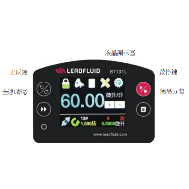 | 流量範圍 | 0.00011~750ml/min (依搭配泵頭與蠕動管而定) |