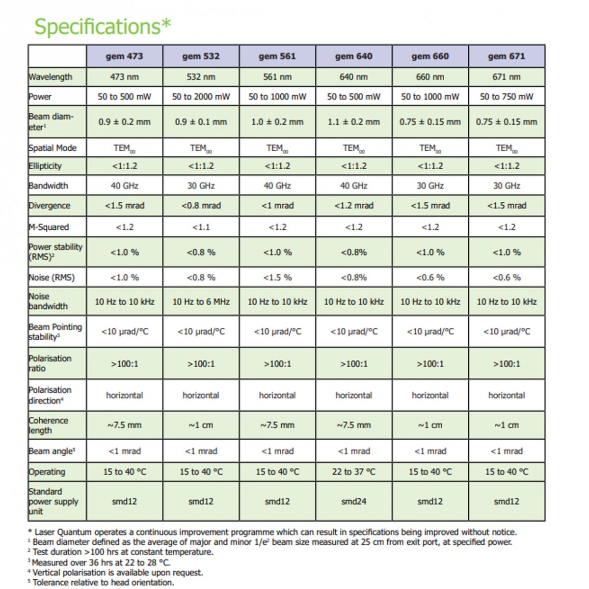 The gem range is a compact series of lasers designed for easy OEM integration. With a wide power range and multiple wavelength offerings, the gem is ideal for system designers wanting a reliable, robust laser with excellent beam quality. The gem lasers are high specification single transverse mode CW lasers, ideal for many applications such as Raman and fluorescence spectroscopy, DNA sequencing, cell sorting and super-resolution microscopy. Our pump diodes are specified as having an MTTF of >100,000 hours at full power, but Laser Quantum de-rates them to further increase their lifetime. This gives the gem industry leading lifetimes that allow it to be treated as a black box; to be installed and forgotten.