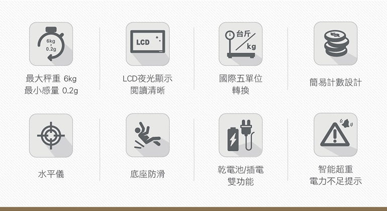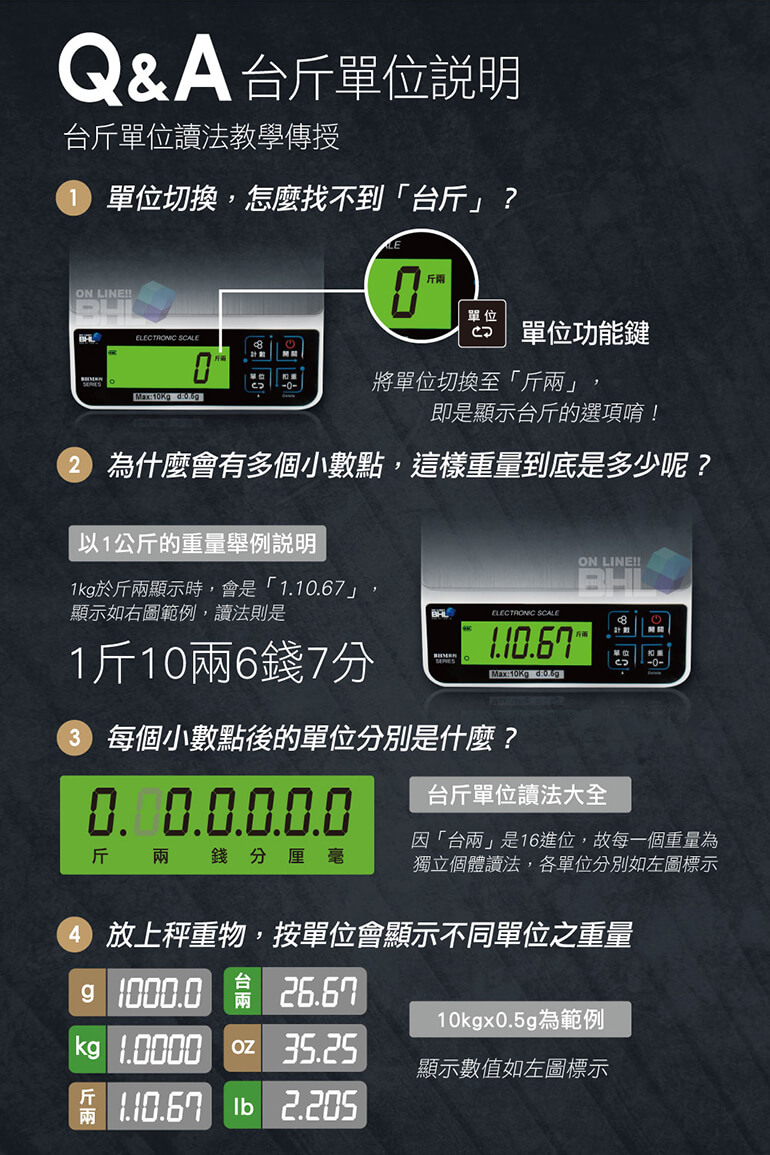 ★台灣專用斤兩單位,國際專用5單位設計