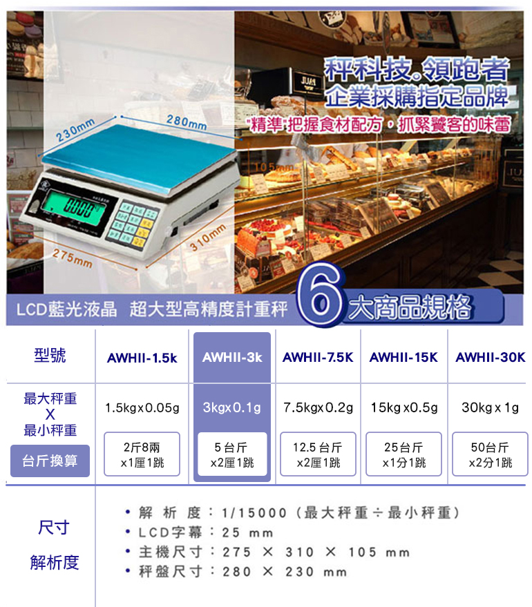 ★最大秤重:15kg (25台斤) 最小秤量:0.5g (1分一跳)