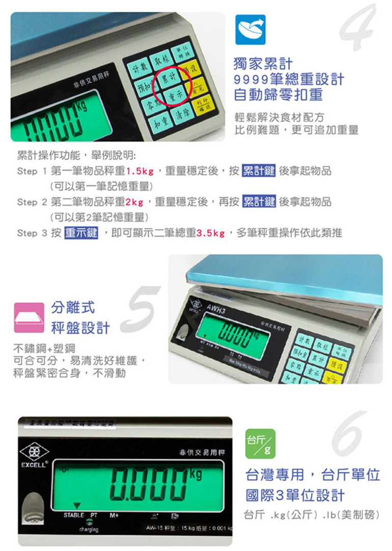 ★台灣專用台斤單位,國際kg(公斤).lb(美制磅)三單位設計