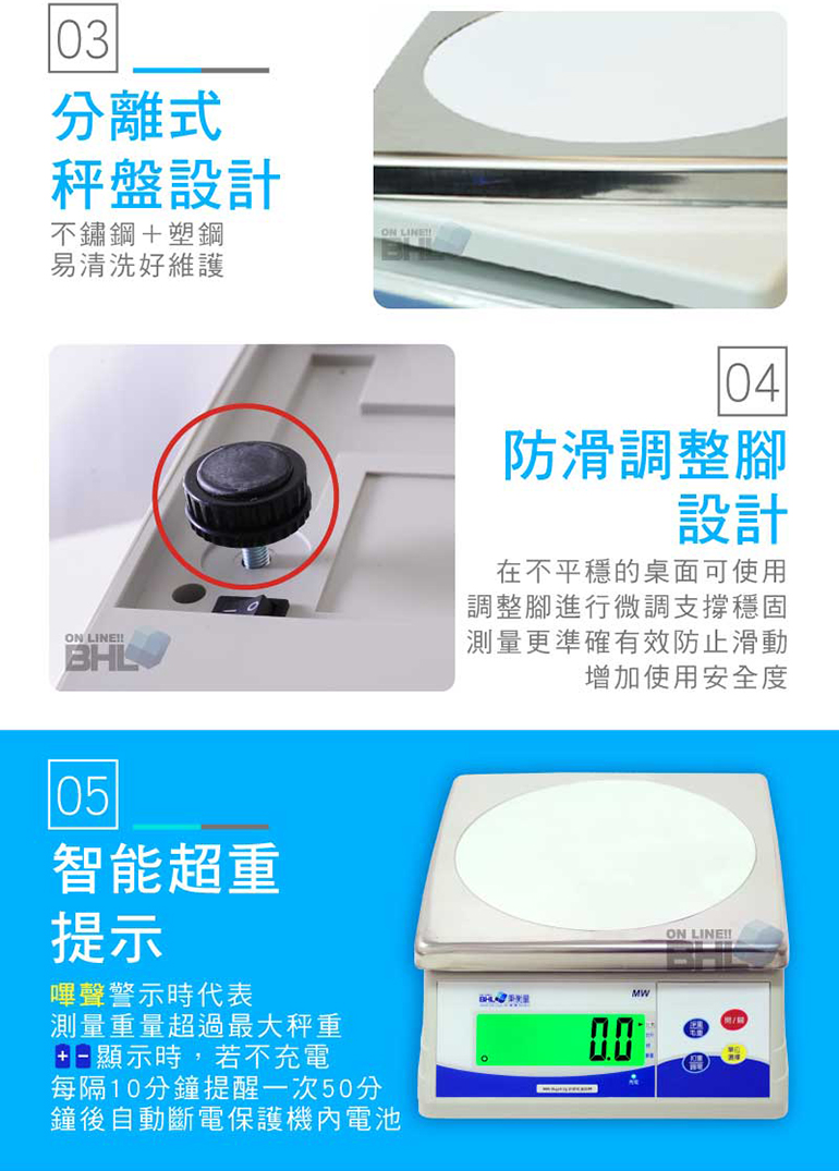 6.不鏽鋼+塑鋼,分離式秤盤設計,易清洗好維護