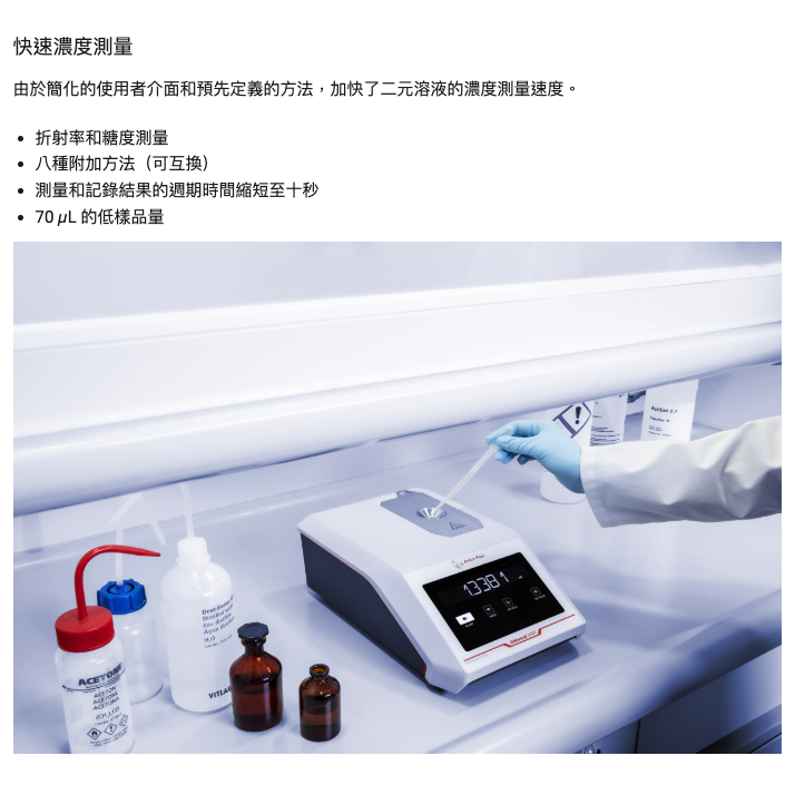 範圍 | 0 °Brix 至 100 °Brix | 0 °Brix 至 100 °Brix | 0 °Brix 至 100 °Brix |