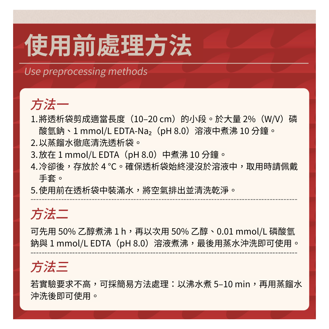透析袋需經預處理與活化後方可使用,否則透析效果不佳。