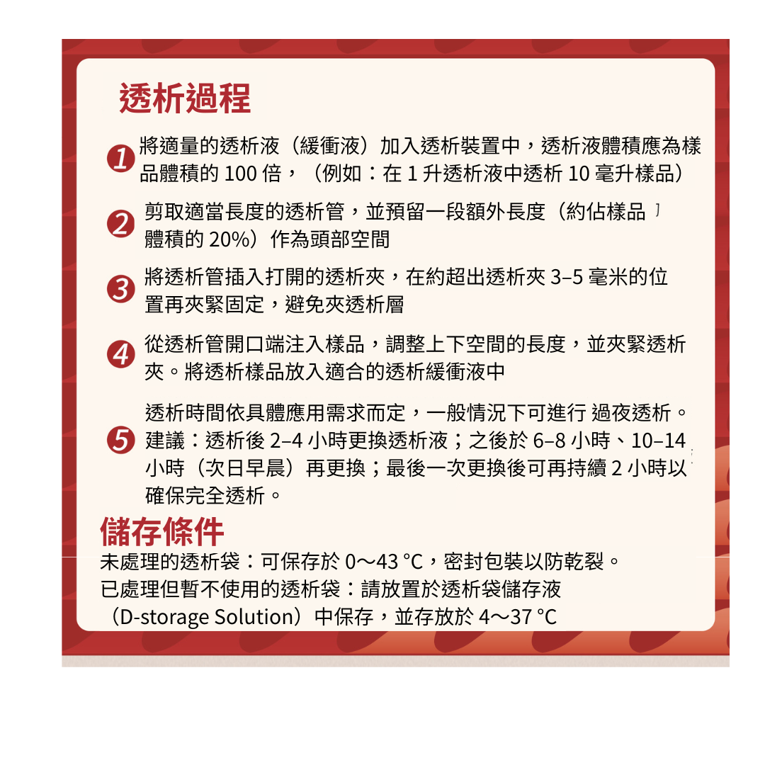 用於提純、脫鹽、大小分子分離及蛋白質透析等實驗