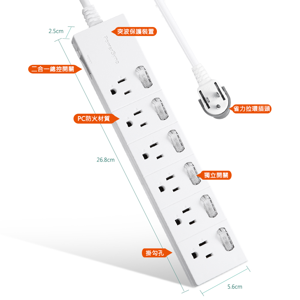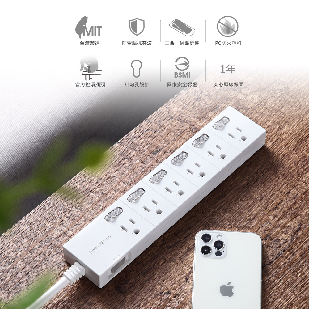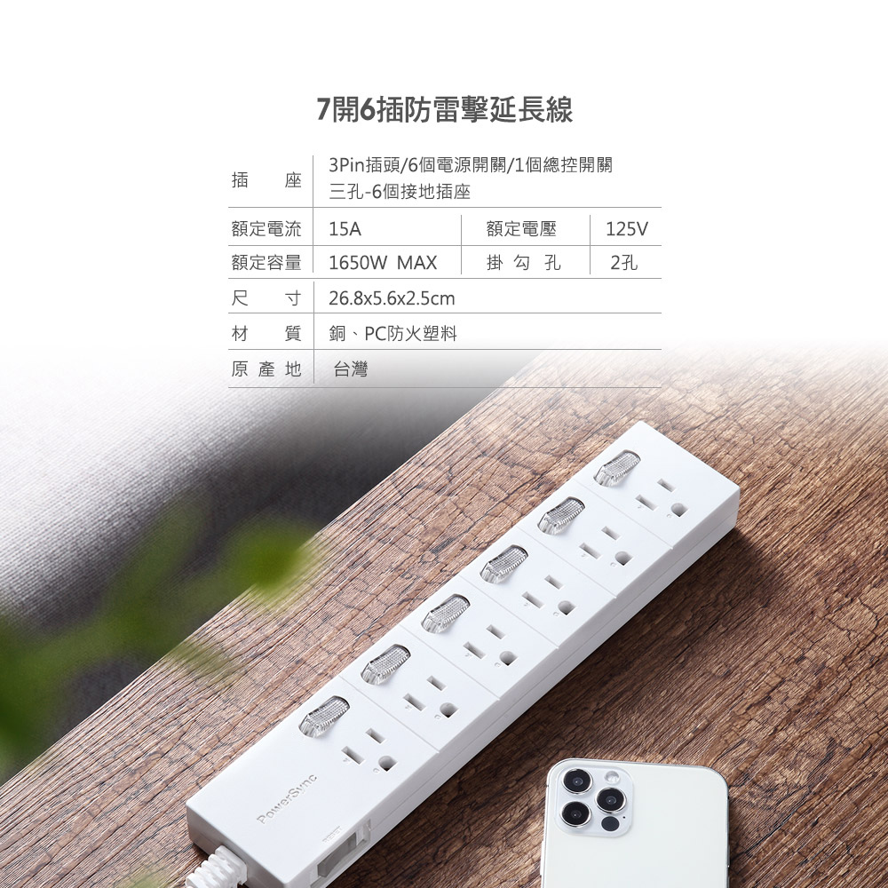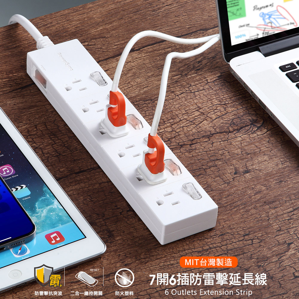 ● 品名:7開6插防雷擊延長線
