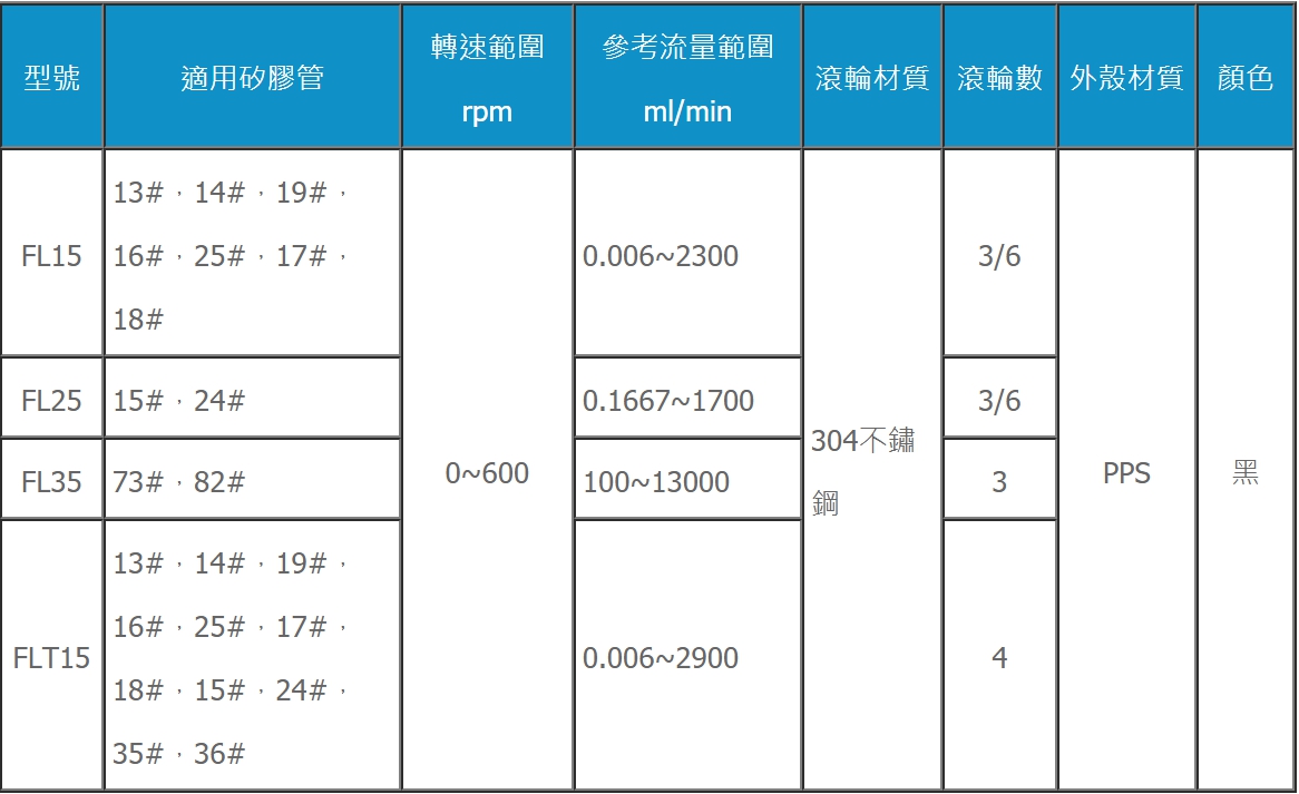 特點:■ 適用多種規格蠕動管