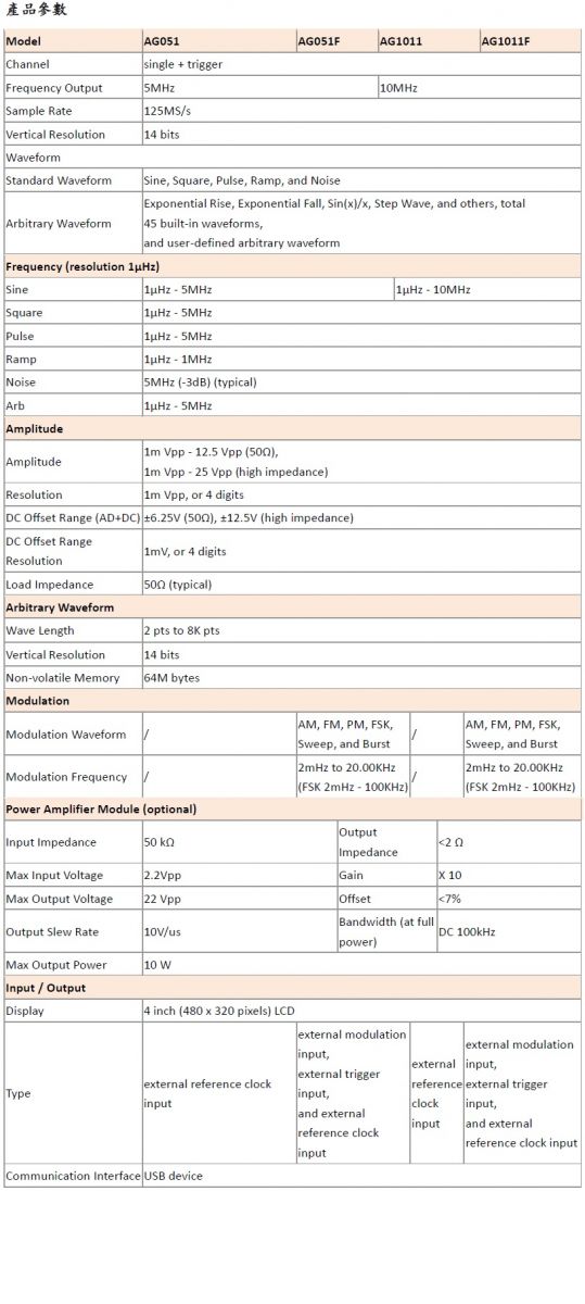 OWON 單通道低頻訊號產生器 AG051 和更多型號