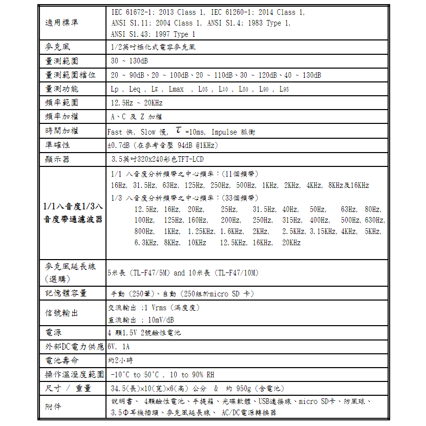 符合 IEC 61672-1 class 1 標準