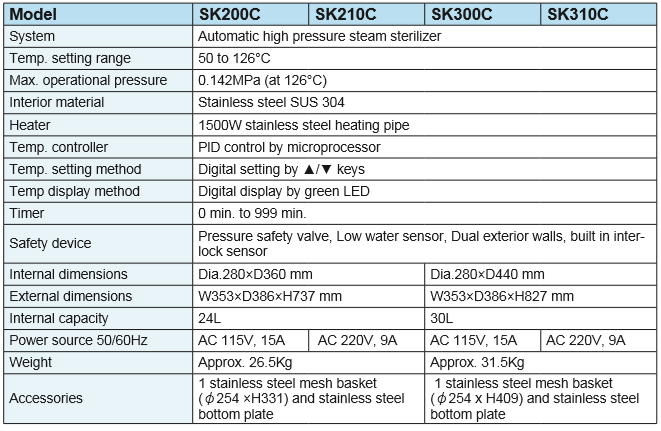 Yamato 蒸氣滅菌器Steam Sterilizer (Laboratory Use, Compact) SK310C 和更多型號
