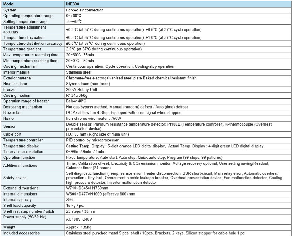 44% power savings compared to previous models Controller upgraded for easier viewing and operability Temperature distribution accuracy improved for better incubation Standard equipped with program operation, auto-stop, auto-start, self-diagnostic, timer, calibration off-set, memory, and electricity & CO2 emission monitor Designed with analog output (4-20mA) and external communication port (RS485)