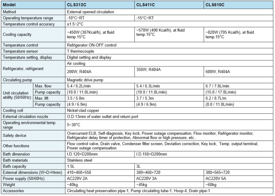 External open cooling water circulator with refrigerator ON-OFF control and powerful cooling capacity. /Standard