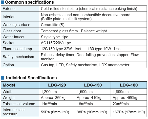 Large front glass door and inner ceiling area, easy to build-in equipment inside synthesis type fume hood.