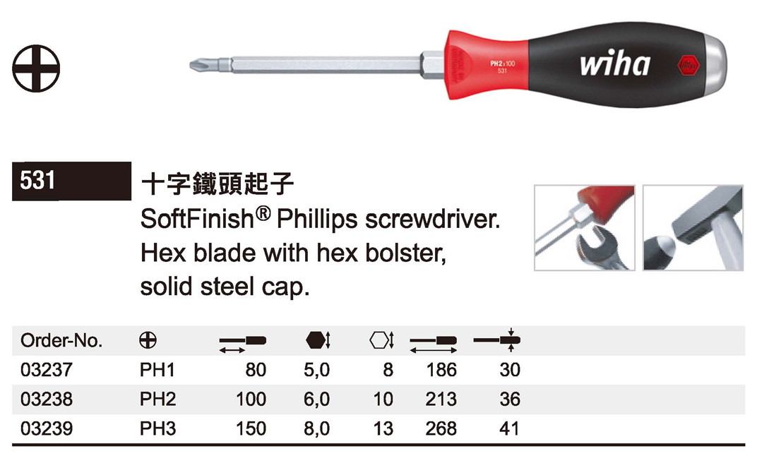 Wiha SoftFinish 十字鐵頭起子 SF通用型 03238 和更多型號
