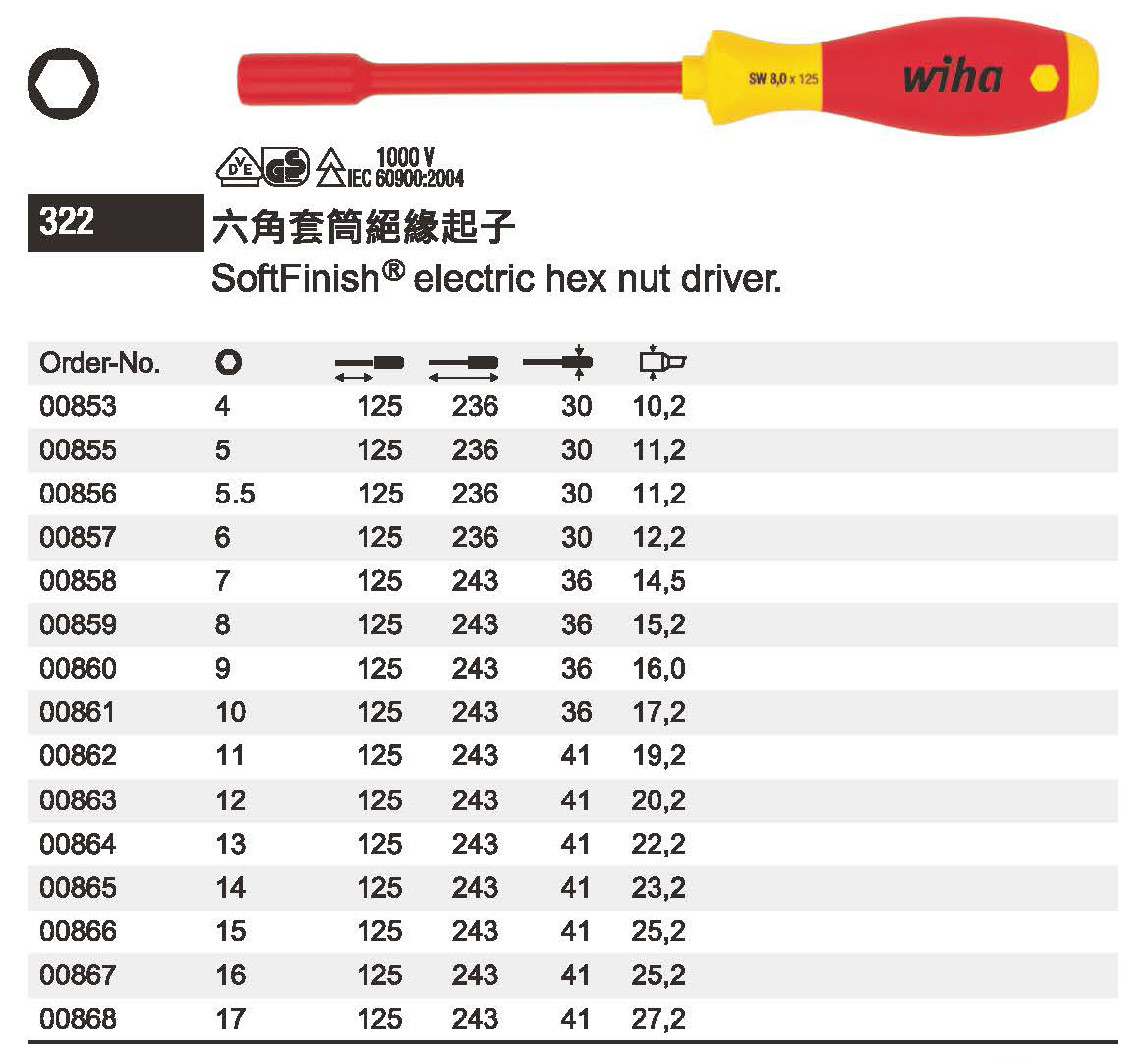 Wiha SoftFinish 六角套筒絕緣起子 00860 和更多型號 - 商品圖 1