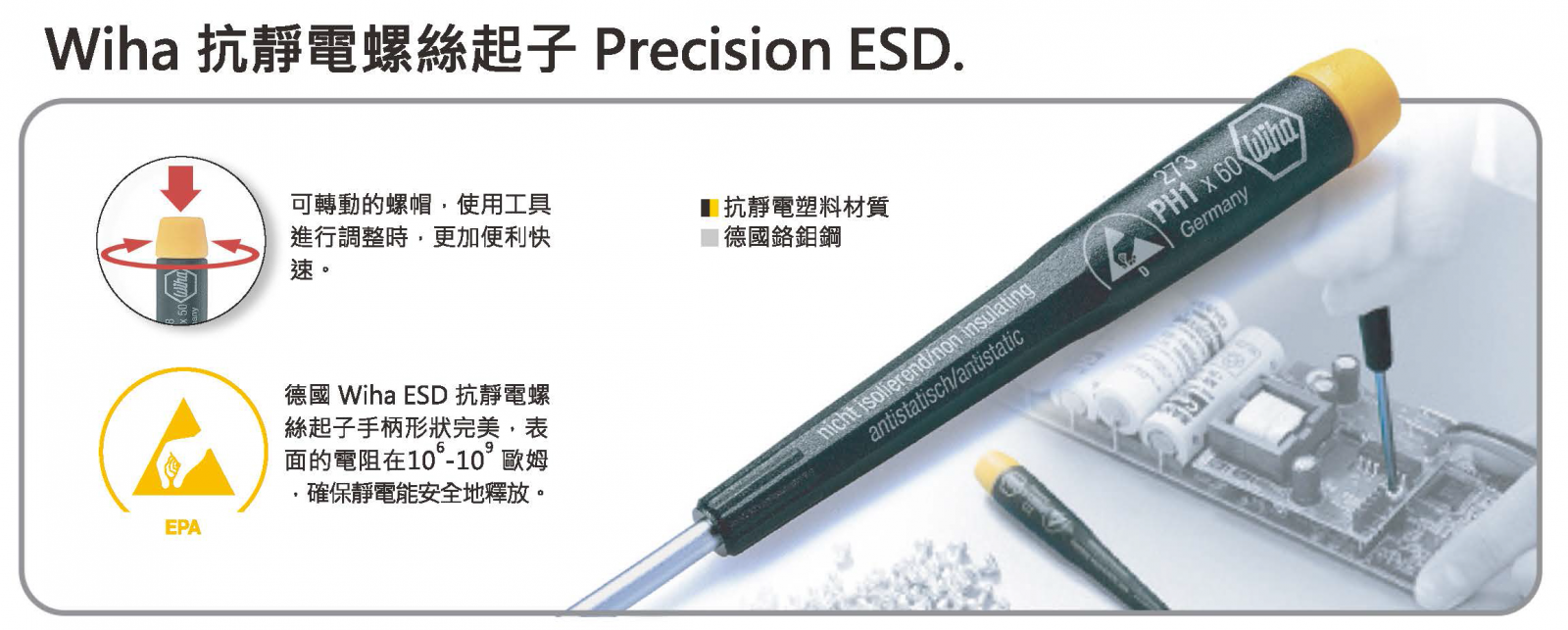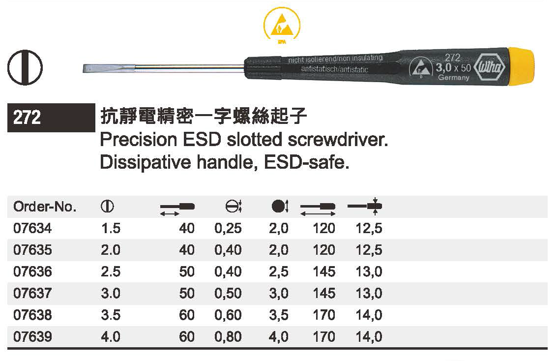 Wiha SoftFinish 抗靜電精密一字螺絲起子 07634 和更多型號