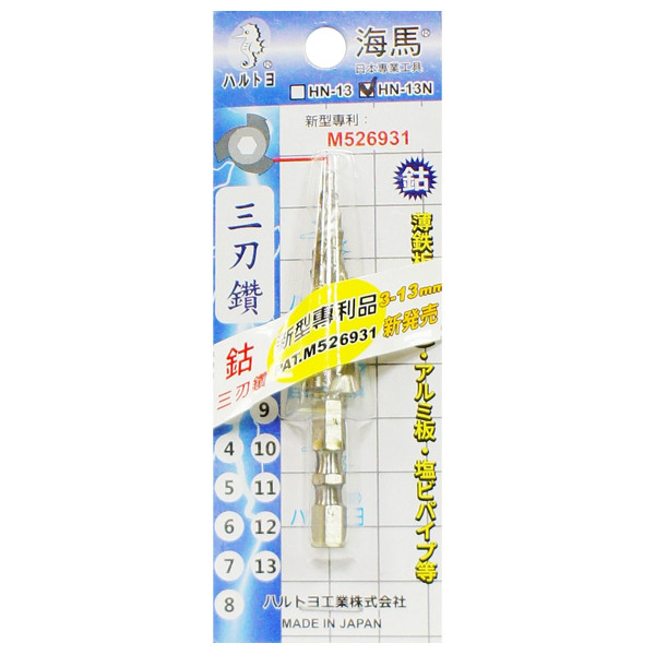 海馬牌 海馬 三刃螺旋六角柄階梯鑽