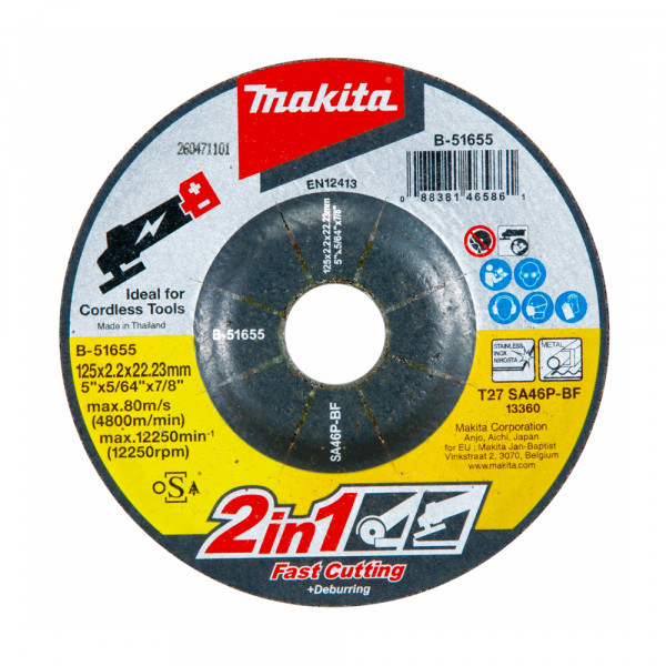 MAKITA 牧田 MAKITA 5"研磨/切斷砂輪片125×2.2×22.23mm