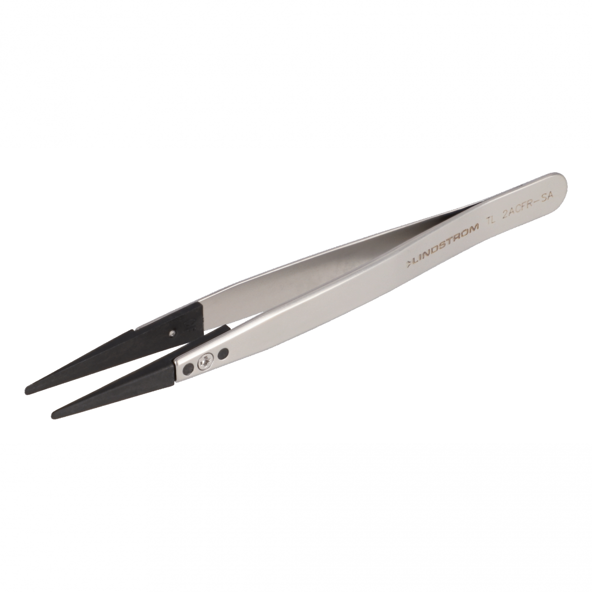 Lindström 碳纖維塑膠可更換尖端 ESD 安全鑷子 2ACFR 型,帶有極細圓形扁平尖端