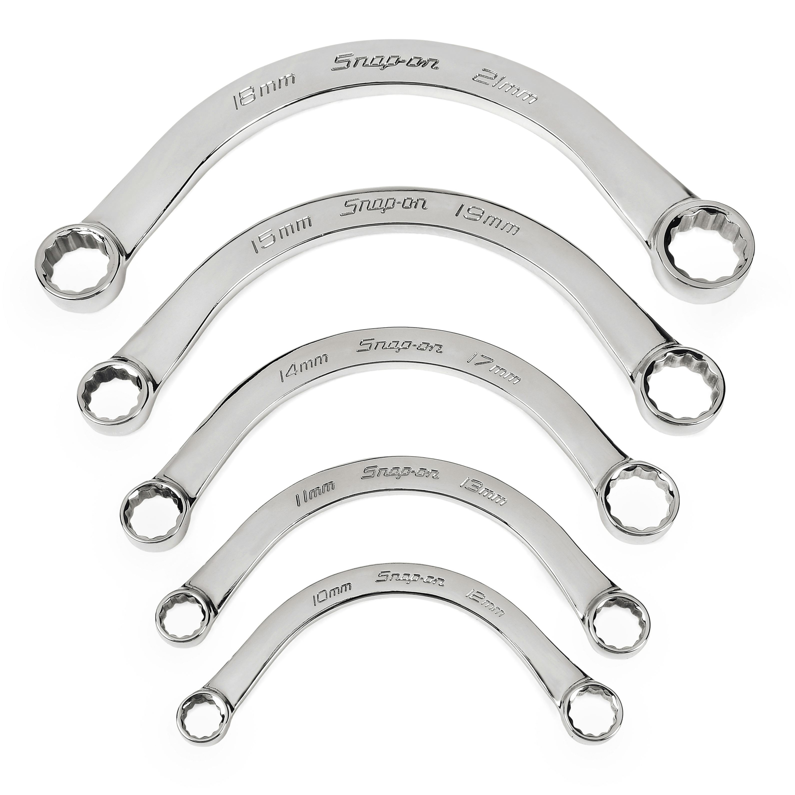 Snap-on 5 件裝 12 點公制 Flank Drive® 半月套筒扳手套件(10-21 毫米) 5 pc 12-Point Metric Flank Drive® Half-Moon Box Wrench Set (10-21 mm) 立即詢價